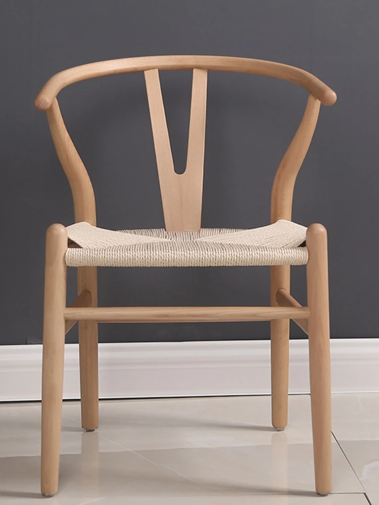 北欧スタイルの高級実木Yチェア - 民宿やカフェに最適な編み込みアームチェア!快適な座り心地で、書斎やダイニングにぴったり。おしゃれで機能的なデザインで、心地よいひとときを演出します。