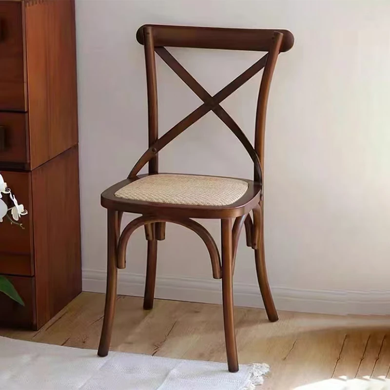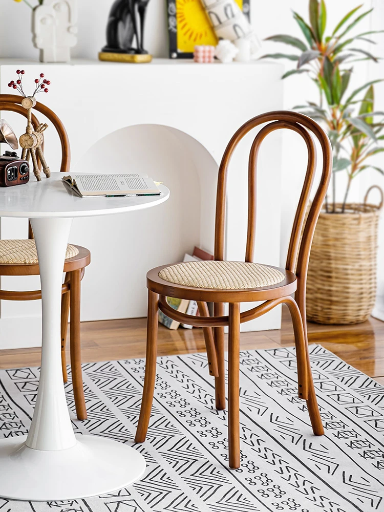 フランス風レトロラタン編み実木ダイニングチェア - 中古ソネット・バルコニー用デスク・背もたれ付きチェア・インフルエンサーに人気のサナチェアでおしゃれな空間を演出!