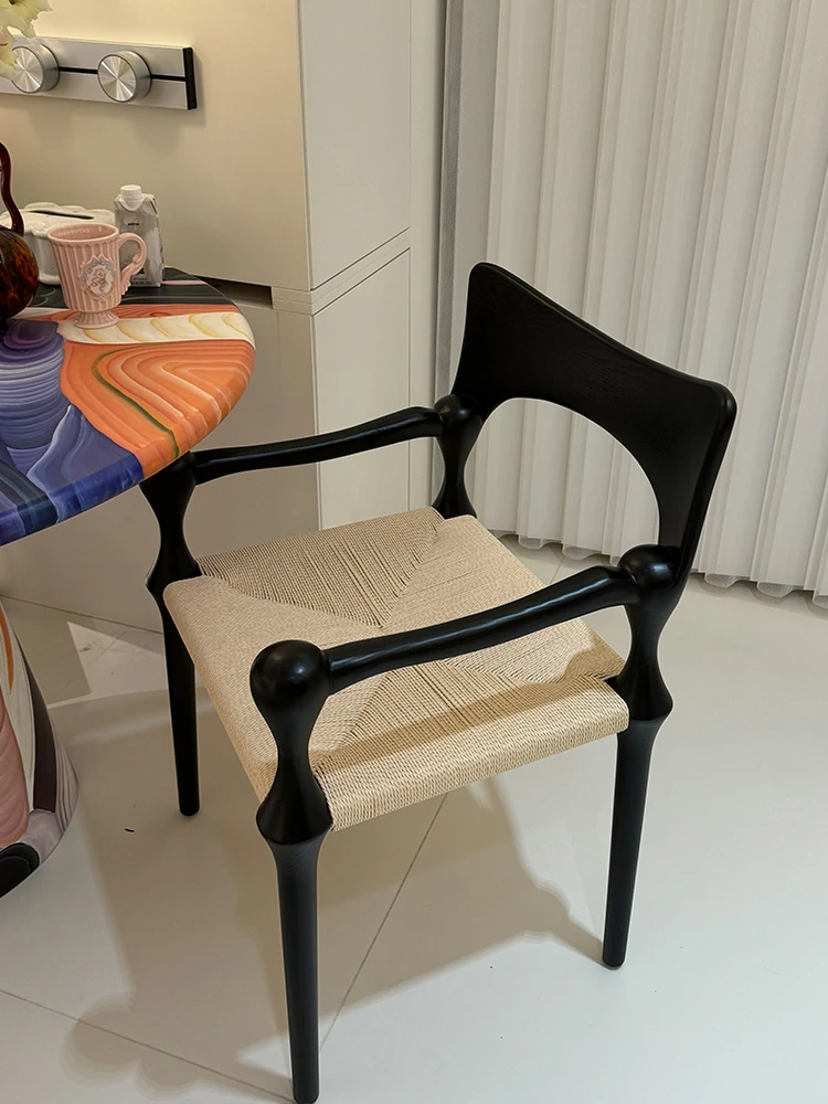 デザイナーダイニングチェア 中古北欧スタイルの無垢材ソフトパッキング背もたれ 憧れのテーブルチェア トレンドのスツール ラグジュアリーでレトロなアームチェア