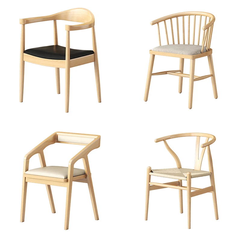北欧風シンプルデザインの天然木ダイニングチェア|小スペース向け|快適なソフトパッキング|高齢者にも優しい背もたれ&アームレスト|オーク&チェリーウッド使用の書斎用椅子