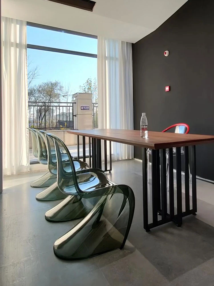 北欧風の人気透明アクリルパントンチェア|プラスチック製食卓椅子|家庭用クリエイティブデザイン|S字型背もたれで快適な座り心地!