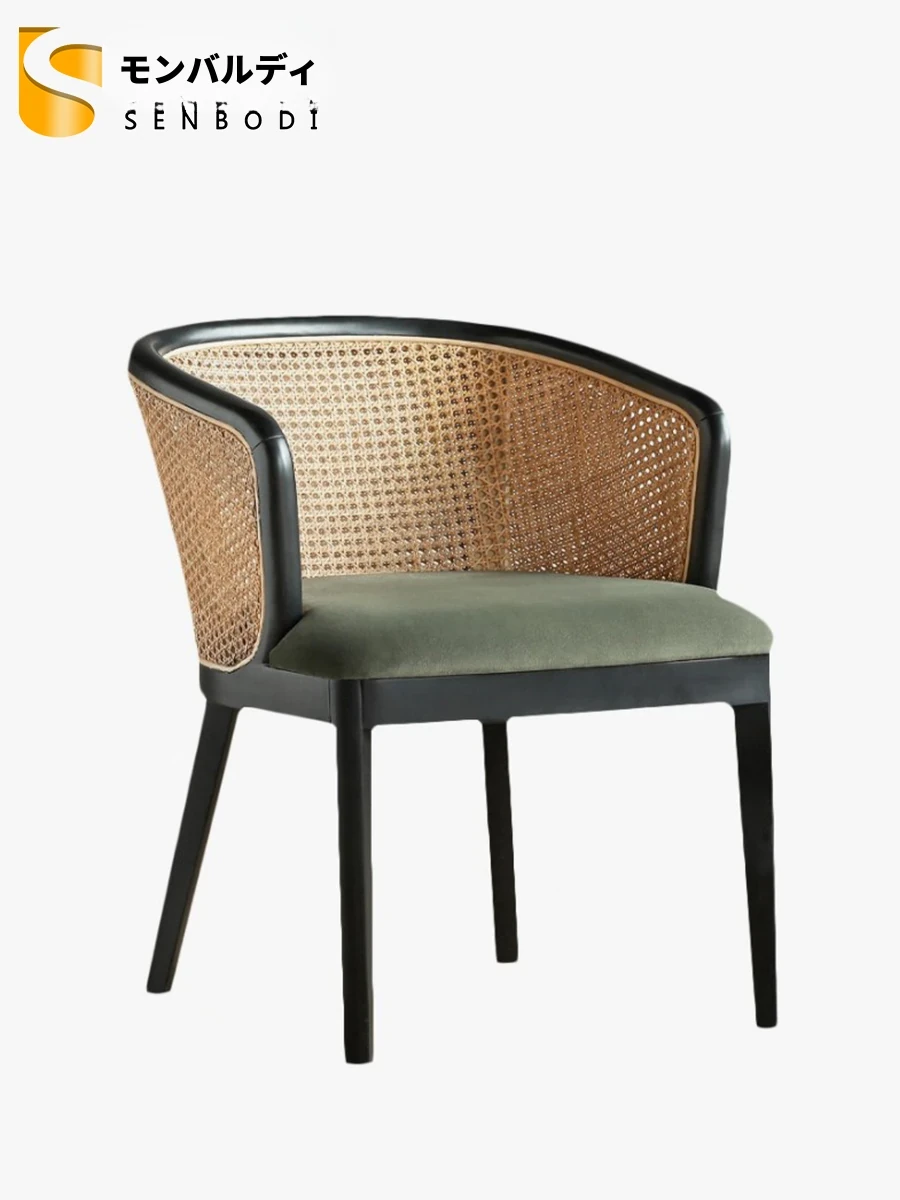 レトロな藤編みダイニングチェア|和風民宿やカフェにぴったりなデザイン|頑丈な無垢材使用で安心の座り心地|心安らぐ空間を演出する一品!