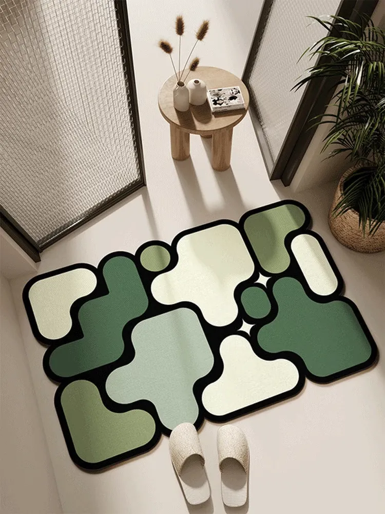 滑り止め速乾!おしゃれなデザインのバスルーム用吸水マット - お手入れ簡単な珪藻土マットで、トイレの入り口をスタイリッシュに演出!