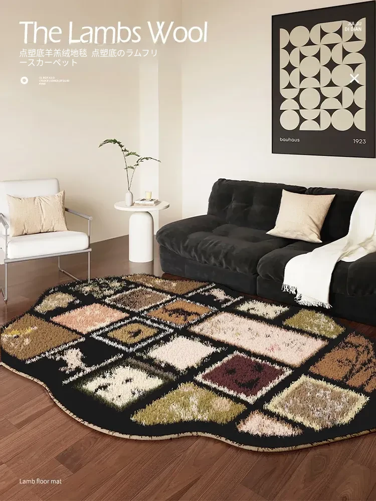 ヴィンテージ風リビング用カーペット アメリカンスタイルのレトロデザイン おしゃれで高級感のあるフロアマット ふわふわの冬用洗濯不要の足元マット