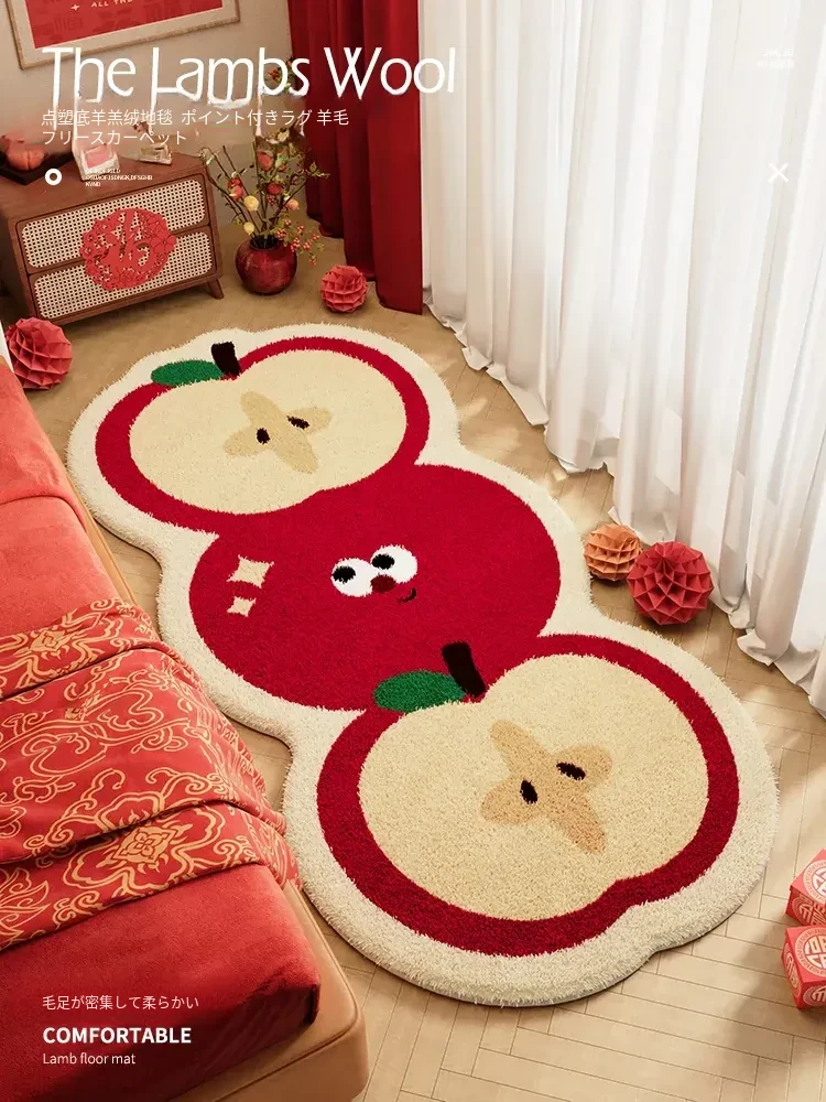 2026年新年限定!可爱な子供部屋にぴったりのカーペット、カラフルなひょうたんデザインの床マット。お祝いムード満点の赤色、ベッドサイドにも最適なクリエイティブな装飾マットです!