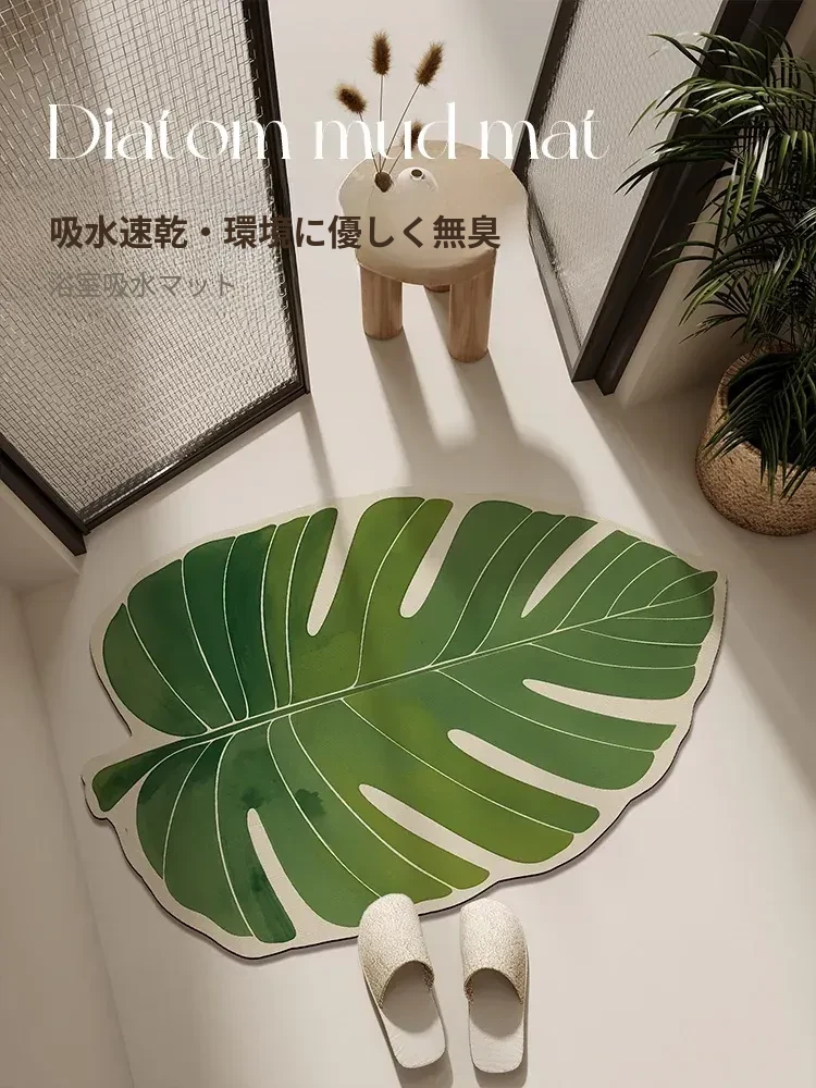 防滑吸水!緑の植物デザインのバスルームマット - シリカゲル製で速乾性抜群、トイレにもぴったりなクリエイティブなデザインの足元マット!快適なバスタイムを演出します。