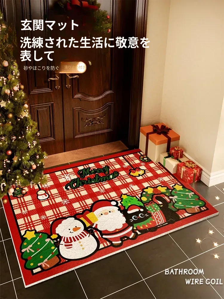 クリスマスの玄関マット|滑り止め付き・おしゃれな室外デコレーション|心温まる雰囲気でお出迎え!靴を脱ぎやすい便利なデザイン!