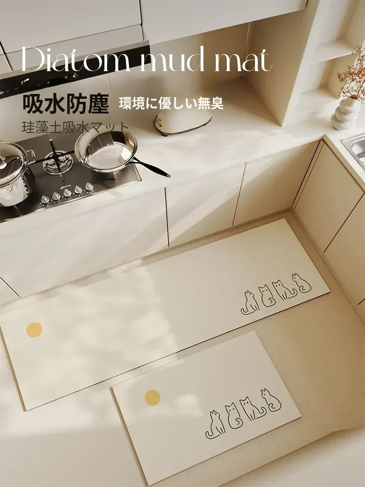 クリーム風味の珪藻土キッチン専用マット、防水・油汚れ対策、清新なデザインの吸水・滑り止めカーペット!快適なキッチン空間を実現し、毎日の料理をもっと楽しく。