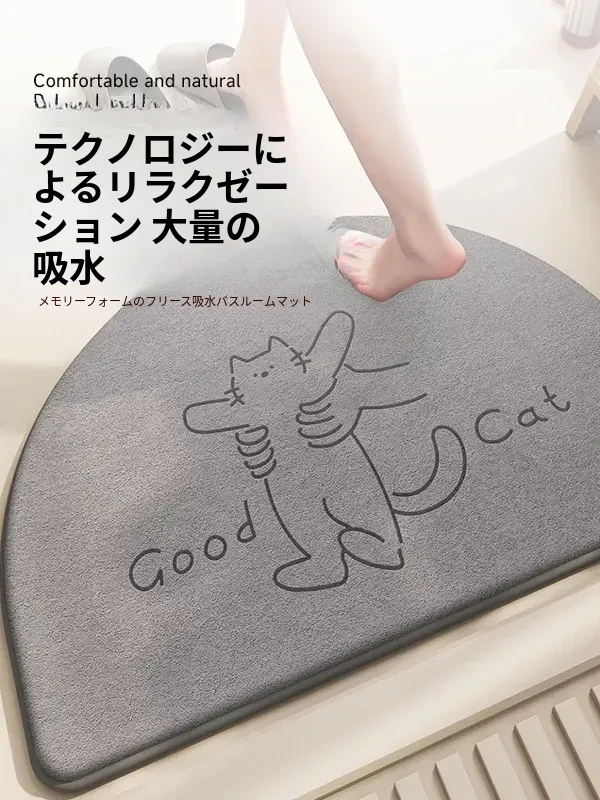 かわいいカートゥーンデザインの吸水マット!シリカゲル素材で速乾性抜群、トイレやバスルームに最適。汚れに強く、滑り止め付きで安心。おしゃれで機能的な足元マットで、毎日の生活をもっと楽しく!