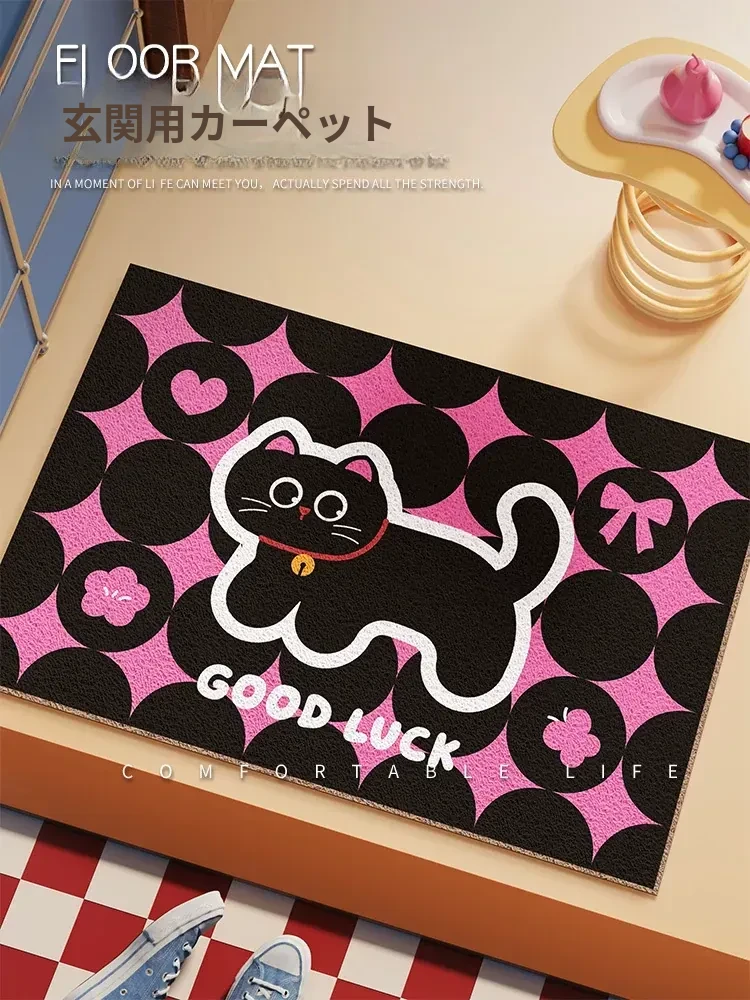 可愛いカートゥーンの黒猫マット|玄関や室内にぴったり!汚れに強く、滑り止め付きでお手入れも簡単な魅力的なデコレーションマット。あなたの家に癒しの空間を!