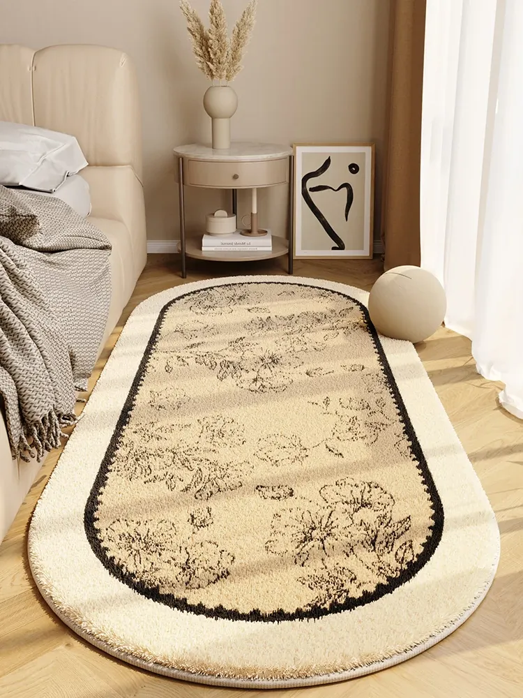 フランス風ヴィンテージベッドサイドラグ 高級感溢れる楕円形デザイン 寝室やクローゼットにぴったり!おしゃれで洗練された空間を演出する、軽やかなラグです。