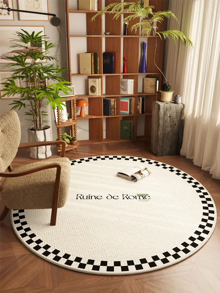 クリーミーな風合いのラウンドカーペット|子供部屋や読書エリアに最適|チェアパッドやリビングのロッキングチェアにもピッタリ|カラフルで女の子の寝室を華やかに彩るマット