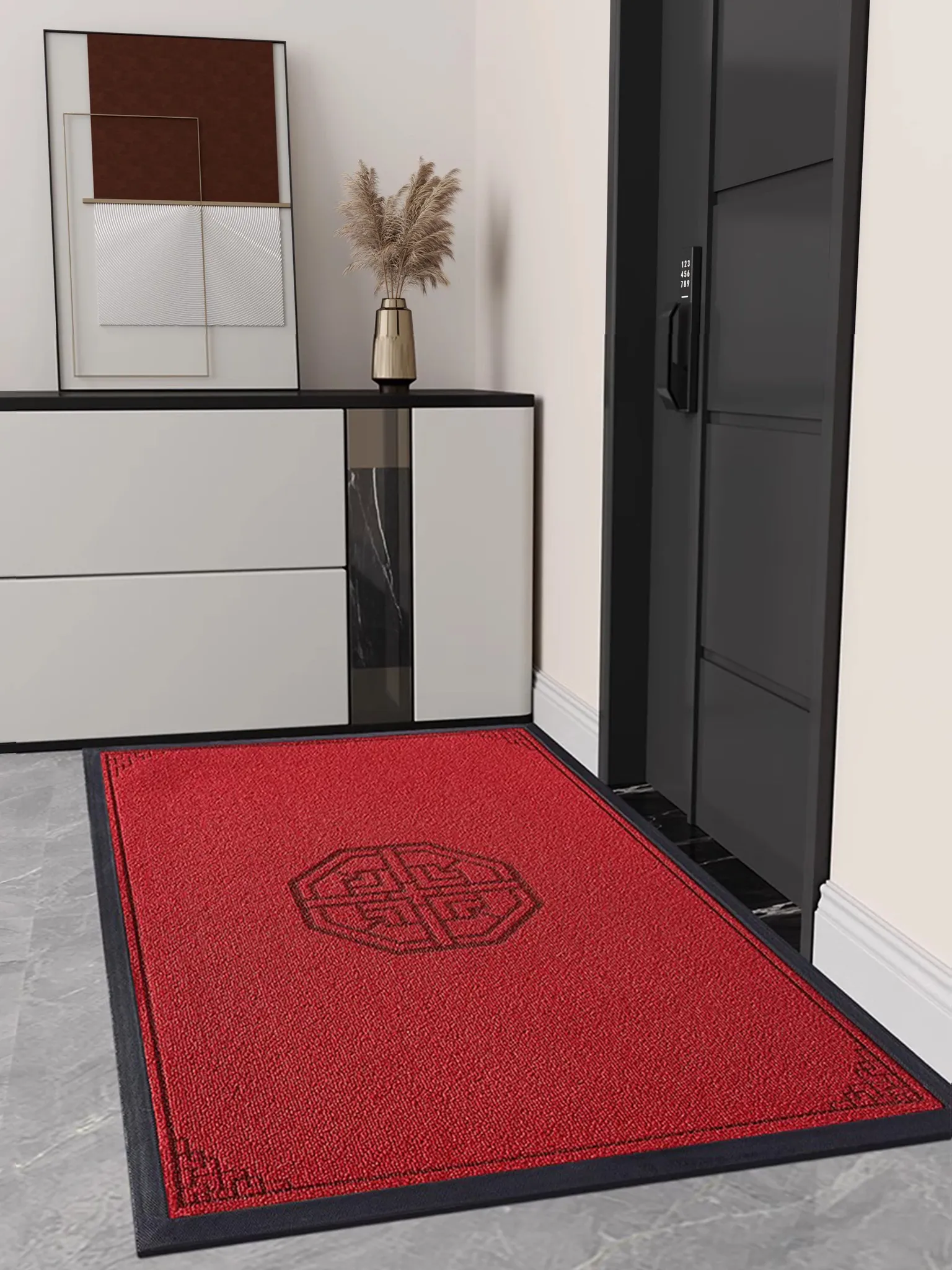 新中式玄関マット - 高級感あふれる滑り止め付きの黒いドアマットで、上質な入室体験を提供します。おしゃれなデザインでお家の顔を引き立てる、必見のアイテムです!