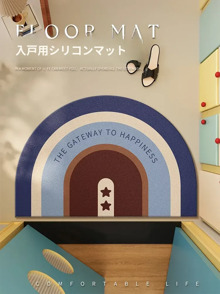 2026年新作!カラフルな虹の半円型玄関マット - 滑り止め付きで安全・快適!おしゃれなデザインで入るたびに気分アップ、家族や友人を迎えるのにぴったりなアイテムです。