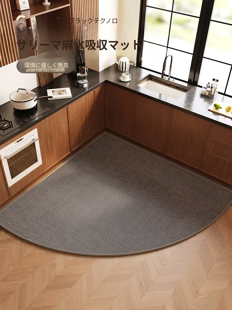 厚手キッチンマット シンプルなコーナー形状 吸水性抜群 グレー色 汚れに強く お手入れ簡単 滑り止め&油はね防止 麻のような感触のラグ