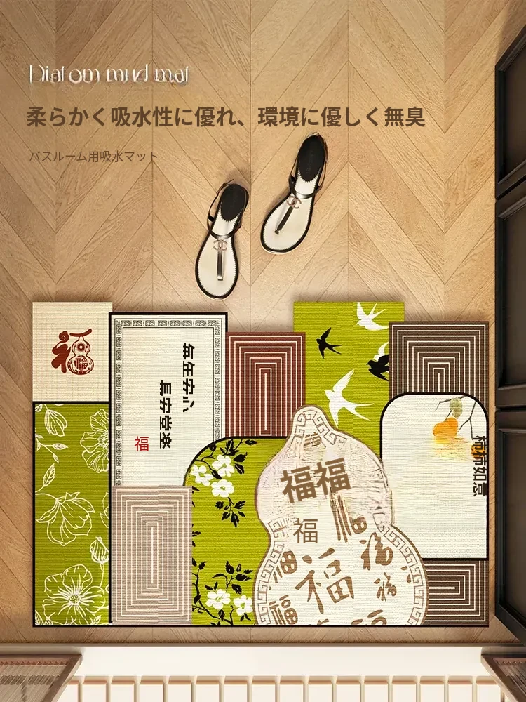 吸水速乾!防滑免打理の新中式バスルームマット - 裁断可能な水はね防止フロアマットで、快適なバスタイムをサポートします!