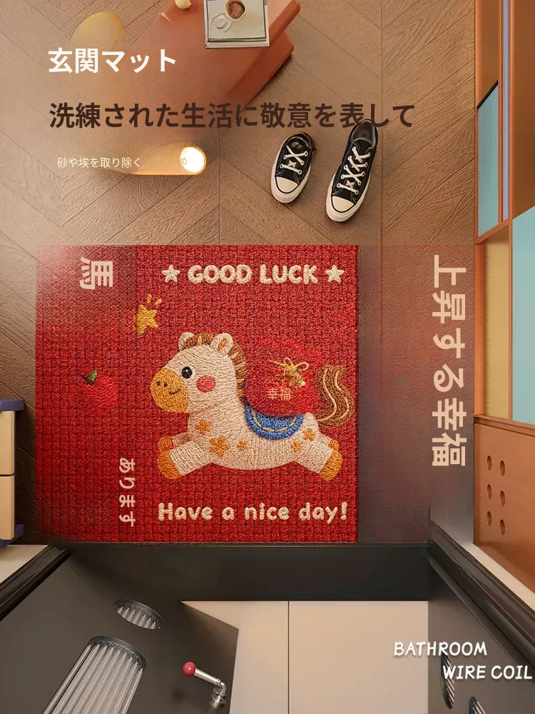 馬年特別デザイン!玄関用滑り止めマット - おしゃれなシリコン製で、訪問者を迎える喜びを演出!安全で耐久性抜群、あなたの大切な家の入り口を彩る完璧なアイテムです。