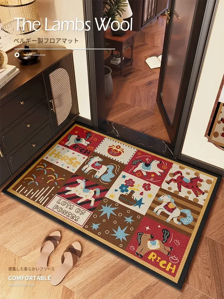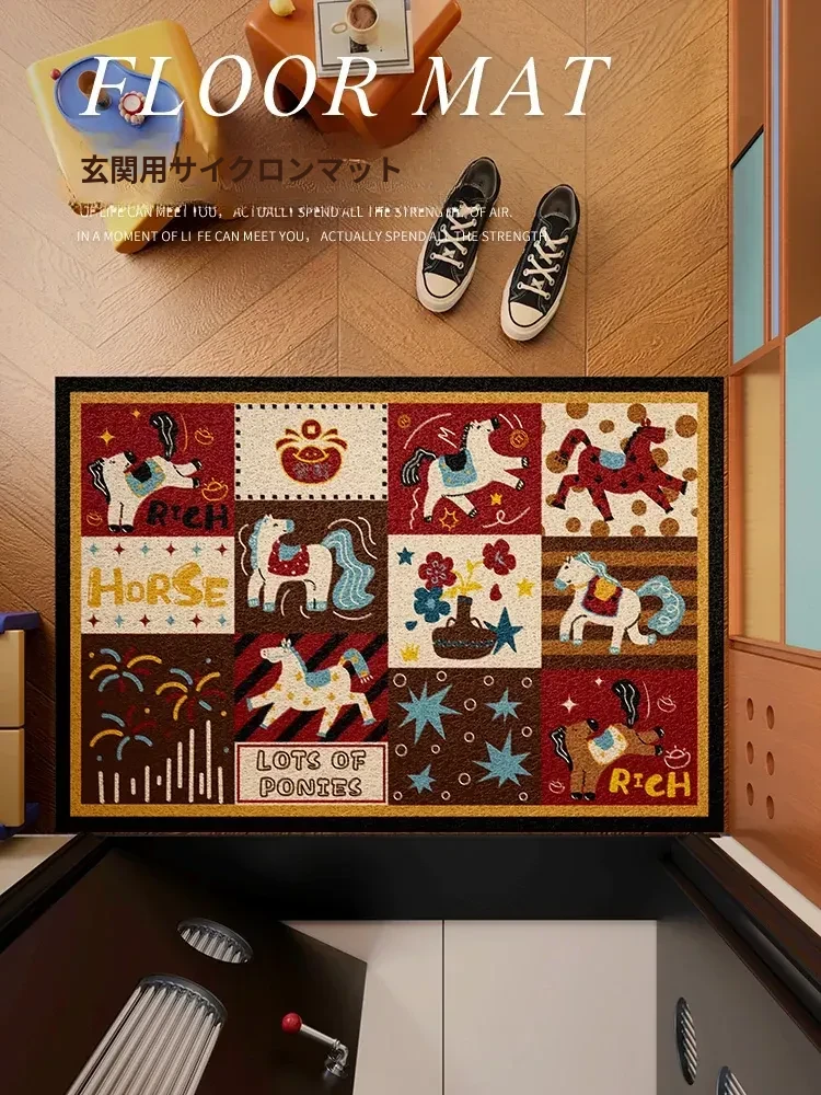 レトロ感漂う高級中古風玄関マット!馬年を祝う新年の装飾にぴったりな入門用カーペットで、おしゃれな玄関を演出。あなたの家に温かみを加え、訪れる人々を魅了します!