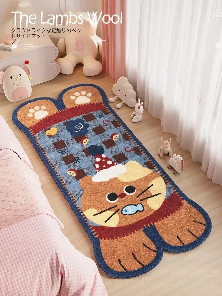 カラフルなキャラクター形状のベッドサイドマット|子供部屋にぴったり!ドーパミンを感じるふわふわの冬用ラグ|寝室のベッド下や前に最適な暖かい足元マット。