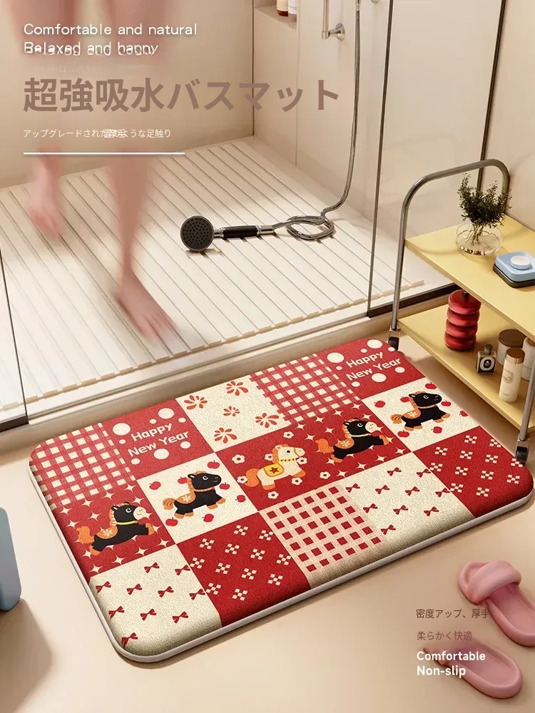 ドーパミン馬年バスルームマット|吸水速乾のメモリーフォームラグ|トイレや玄関に最適な滑り止め機能付き!快適な足元を実現し、毎日の生活に彩りを加えます!