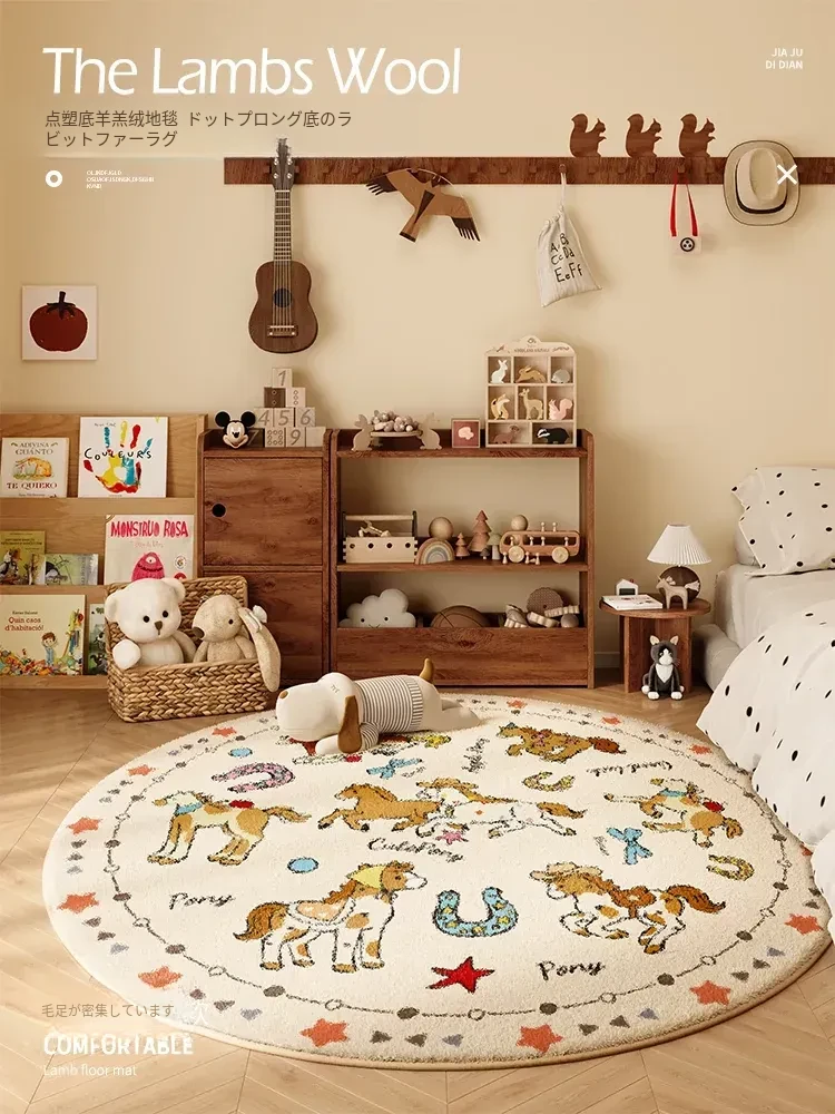 馬年の可愛いサークルラグ - ベッドサイドにぴったりなふかふかのマット!子供部屋やクローゼットにも最適な小サイズ。カラフルなデザインでお部屋を明るく彩ります!