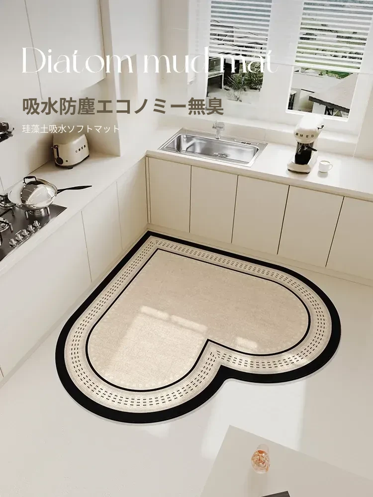 ハート型キッチンマット!人気のあるシリカゲル吸水フットマットで、掃除も簡単!滑り止めと防油機能付きの専用カーペットです。おしゃれなデザインで、あなたのキッチンをもっと素敵に演出します!