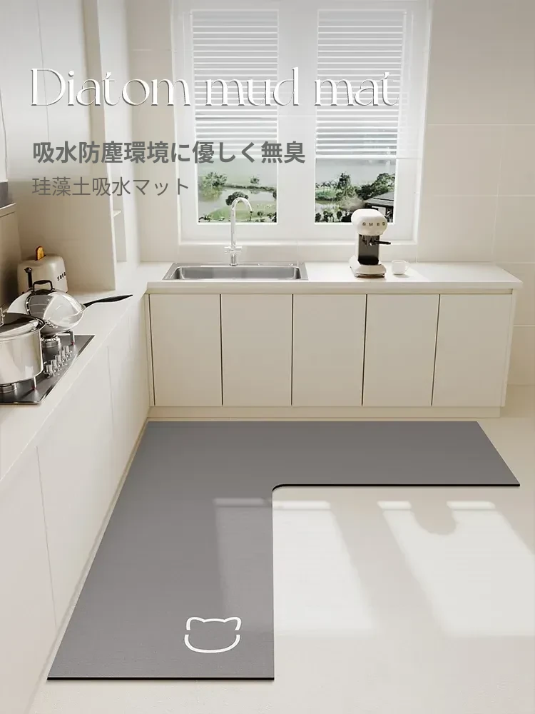 L型キッチン専用防水防滑オイル防止マット!お手入れ簡単なシリカゲル製、角にぴったりフィットするデザインで、清潔なキッチンを実現!