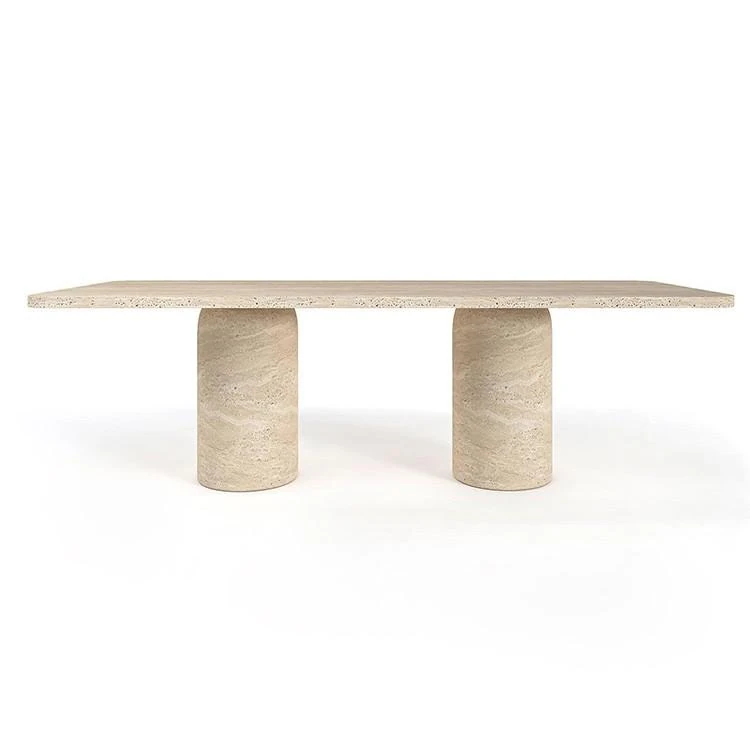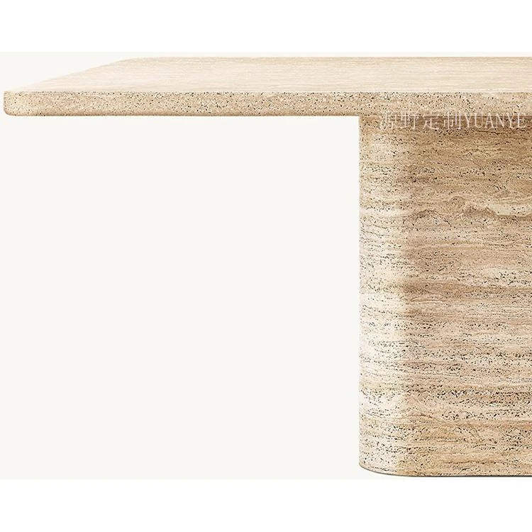 Luxury Natural Roman Cave Stone Square Dining Table - Elegant Cream Marble, Perfect for Home Conversations and Dining, Embracing Wabi-Sabi Aesthetics.