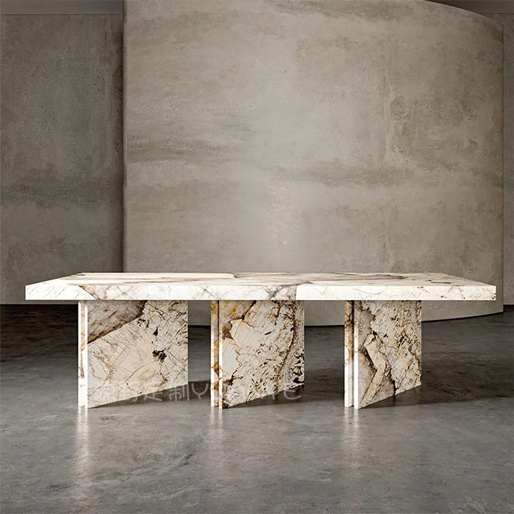 Natural Cave Stone Dining Table - Minimalist Italian Style for Villas and Hotels, Designer's Choice for Chic Showroom Spaces, Trendy French Long Table.
