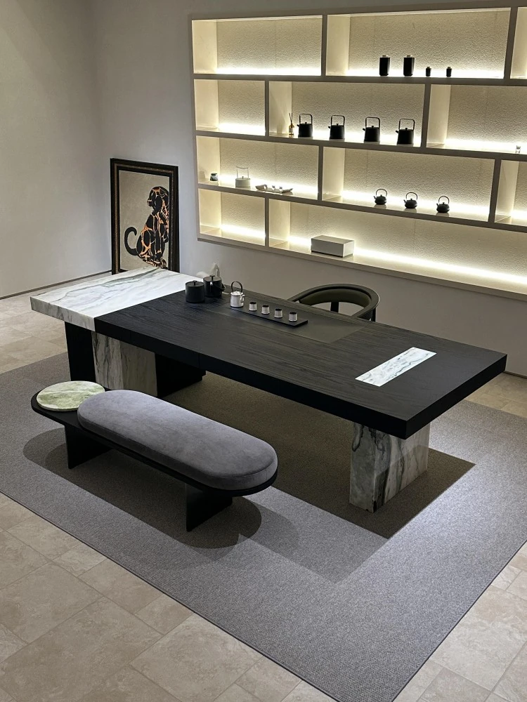 Modern Minimalist Italian Solid Wood Dining Table with Marble Top - Designer Tea Table, Office Desk, and High-End Conference Table for Luxurious Spaces