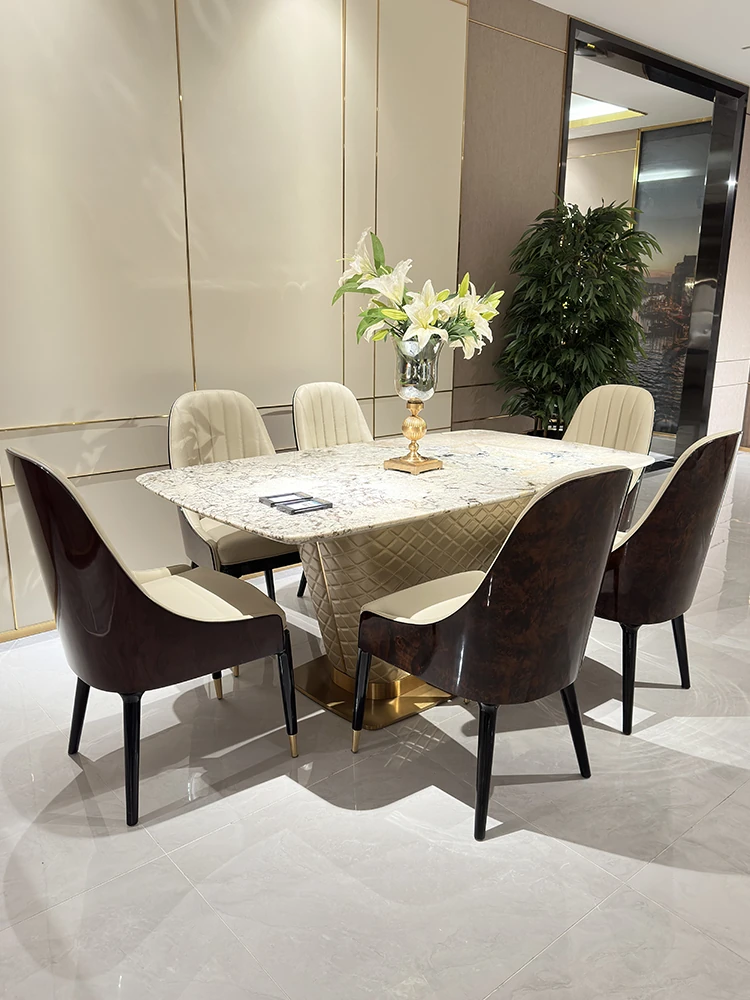 Italian Minimalist Natural Marble Platinum Diamond Dining Table - Luxurious Elegance in a High-End Rectangular Design for Sophisticated Living Spaces