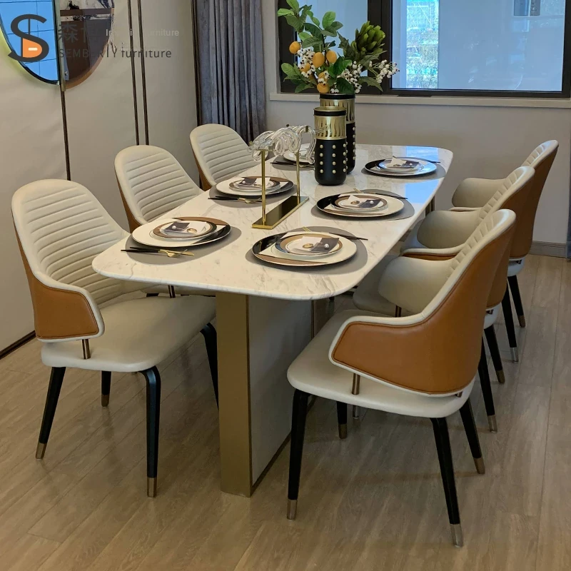 Italian Minimalist Stone Dining Table Set for Villa Showcase - Rectangular 6-Person Dining Table, Perfect for Modern Home Dining Rooms, Stylish and Durable Furniture