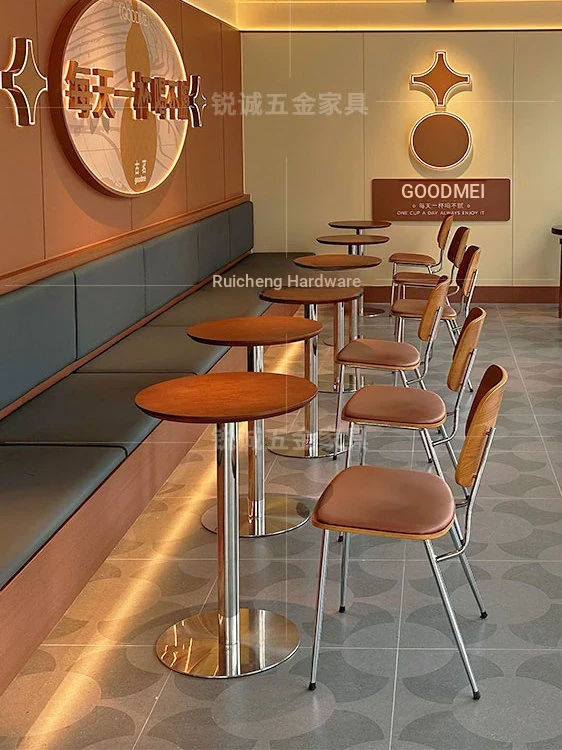 Trendy Industrial-Style Fast Food Table and Chair Set for Milk Tea Shops, Breakfast Noodles, and BBQ Restaurants - Perfect for Commercial Use!