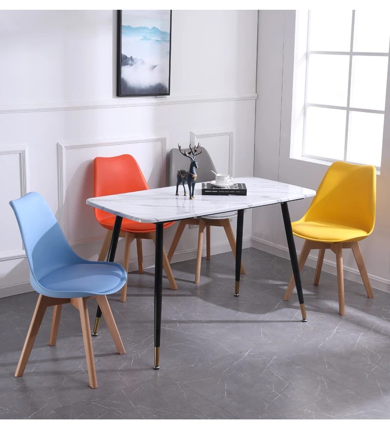 Modern Nordic Dining Chair with Solid Wood Legs - Minimalist Rectangular Table for Living Room, Perfect for Easy Dining in Rent Homes