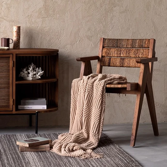 Nordic Chic Woven Dining Chair with Backrest - Designer Accent Chair for Home Use, Vintage-Style Coffee and Lounge Chair for Living Room Relaxation.