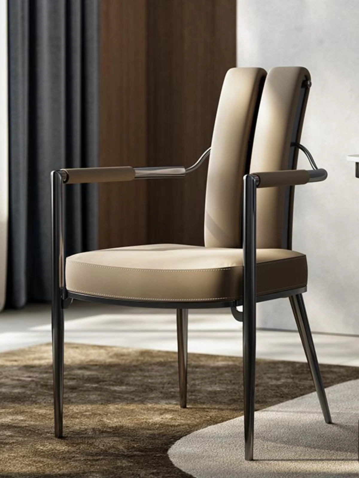 Luxury Designer Tea Chair - High-End Dining Chair for Home, Featuring Genuine Leather and Modern Stainless Steel, Perfect for Reception and Tea Tables.