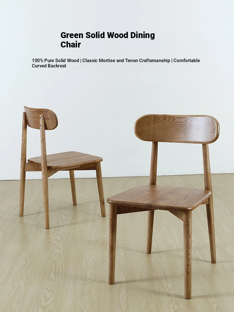 Scandinavian Solid Wood Dining Chair - Minimalist Modern Ash Wood Backrest Chair, Comfortable Leisure Chair for Home Dining Room - Green Style Dining Chair