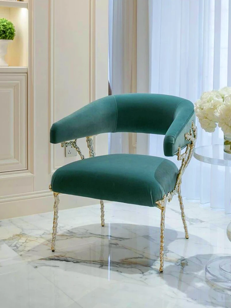 Elegant Italian-Designed Pure Copper Dining Chair - Creative Backrest Leisure Chair for Luxurious Villas and Homes, Perfect as a Single Makeup Chair.