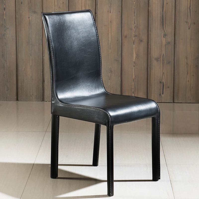 Modern Minimalist Dining Chair with Leather Backrest - Stylish Black and White Restaurant Chair for Home and Hotel Dining Tables - Perfect for Elegant Dining Experiences