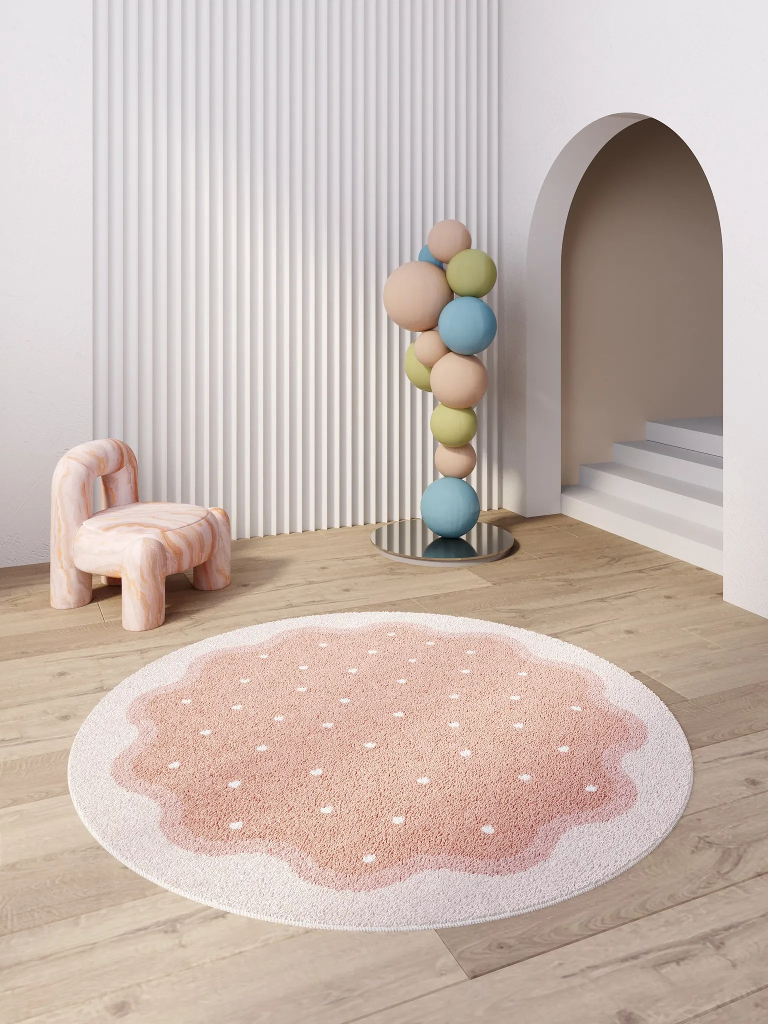 Creamy Round Area Rug for Kids' Reading Nook - Cozy Chair Cushion for Living Room Rocking Chair - Colorful Floor Mat for Girls' Bedroom