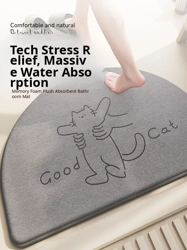 Cartoon Half-Round Memory Foam Bath Mat - Soft, Quick-Dry, and Water Absorbent Carpet for Home Use - Stylish and Easy to Clean Plush Bathroom Rug