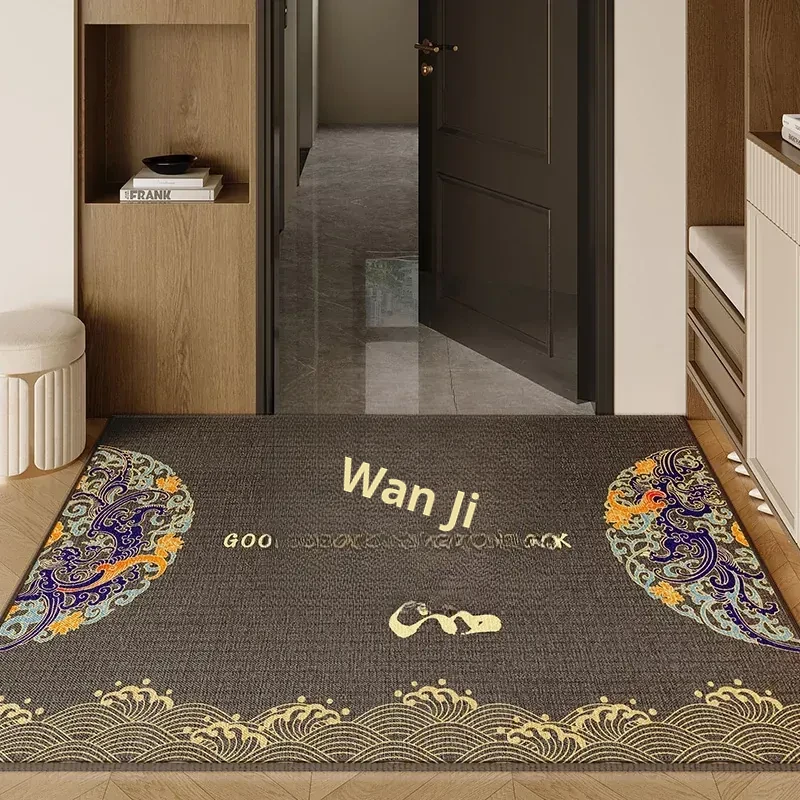 Elegant Black Non-Slip Entrance Mat for New Chinese Style Home - Premium Quality Doorway Carpet for Hallway and Entryway, Perfect for Enhancing Your Home's Aesthetic