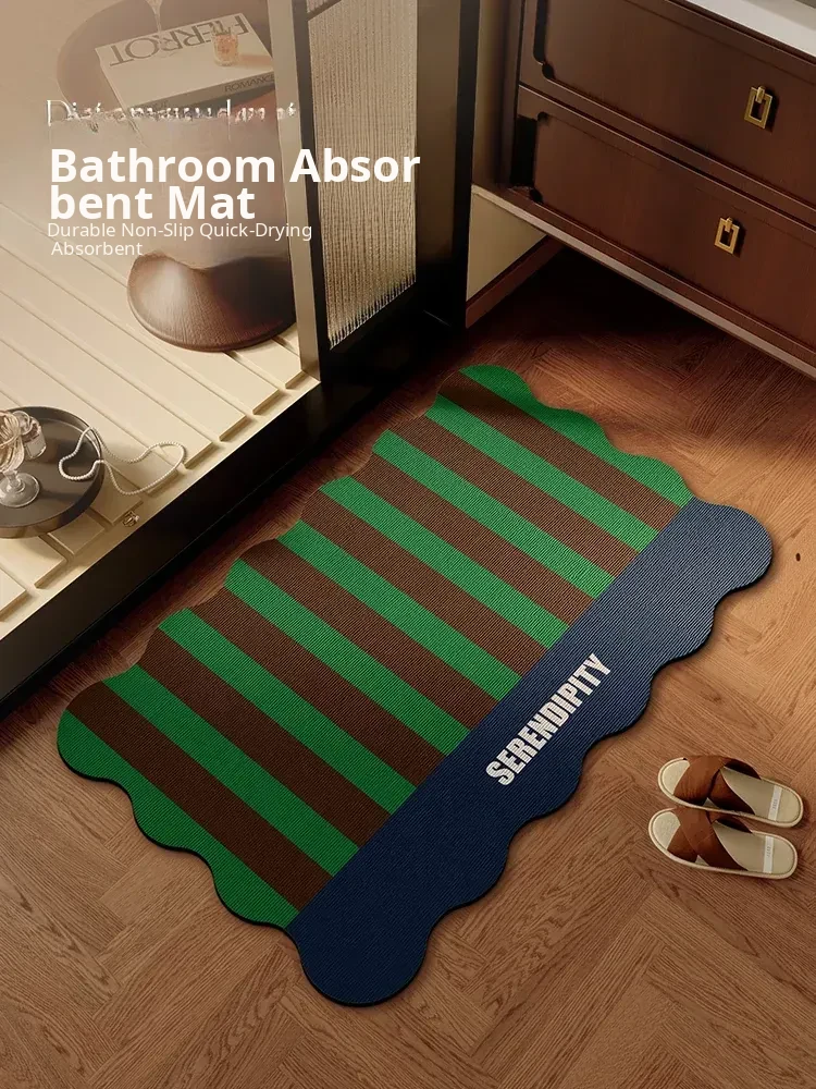 Quick-Dry Water Absorbent Bathroom Mat - Non-Slip, Easy-Care Rug in New Chinese Style, Customizable Size for Splash Control and Comfort