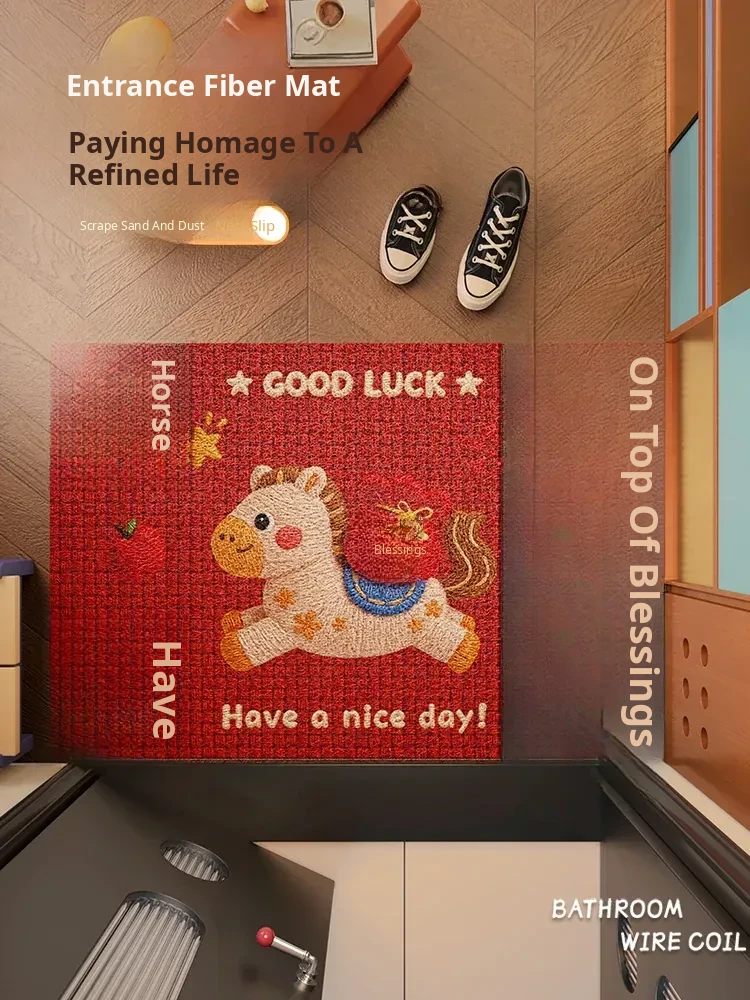 "Year of the Horse Welcome Mat - Festive Non-Slip Door Mat for Entryway, Perfect for Celebrating the New Year with Style and Comfort"