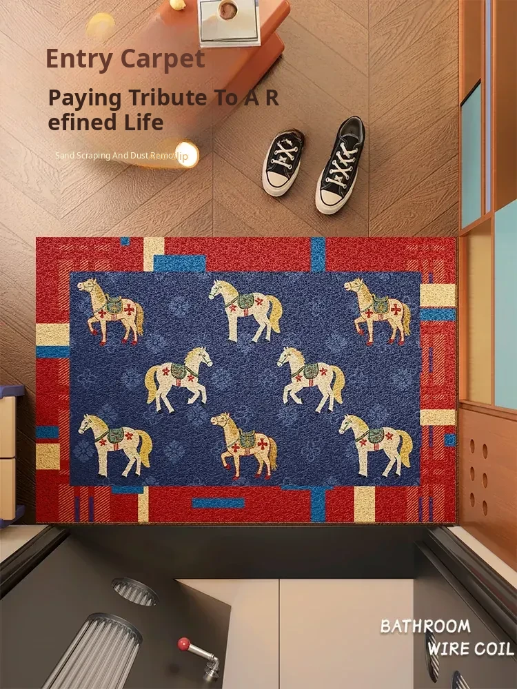 Luxury Silk Loop Entry Door Mat - 2026 New Year Year of the Horse Carpet, Vintage Elegance, Low-Maintenance Entryway Rug