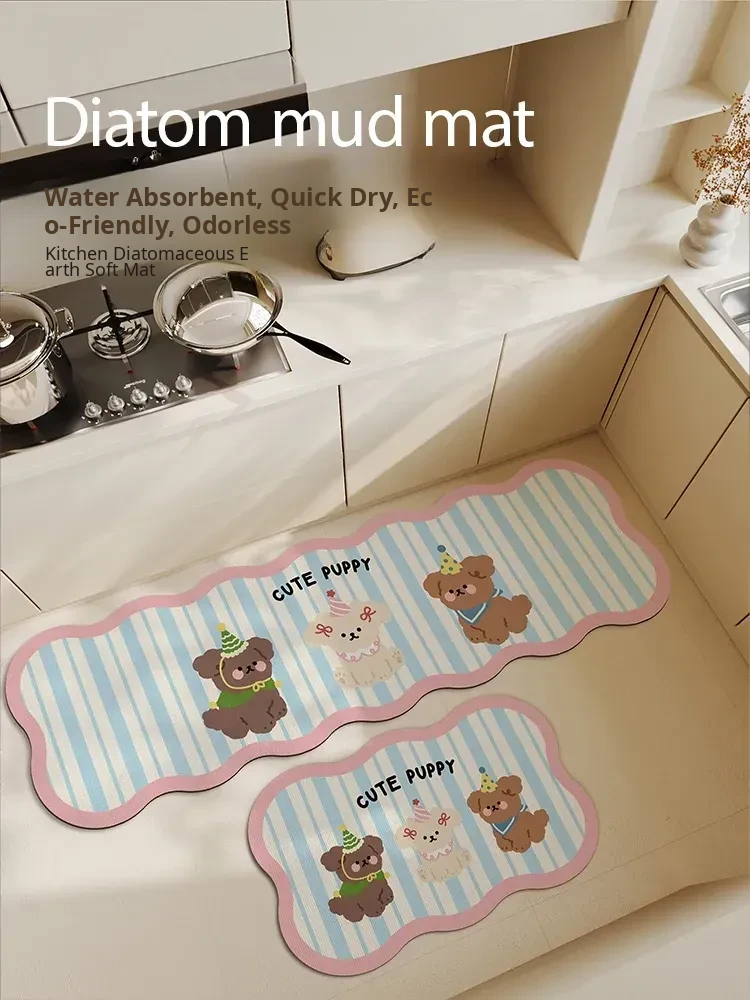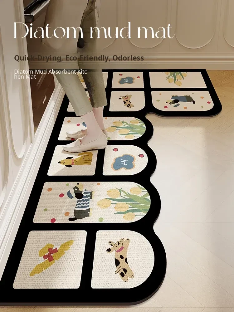 Cartoon Diatomaceous Earth Absorbent Mat - Ultra-Thin Long Narrow Door Mat for Kitchen and Bathroom, Perfect for Entryways and Thresholds