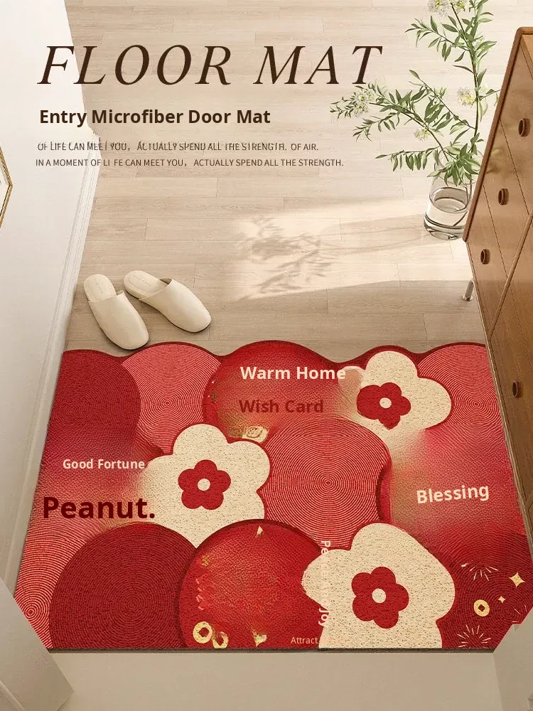 Festive Red Entrance Door Mat for New Year - Cheerful and Safe Home Entry Carpet, Non-Slip Silk Loop Doormat Perfect for Your Home