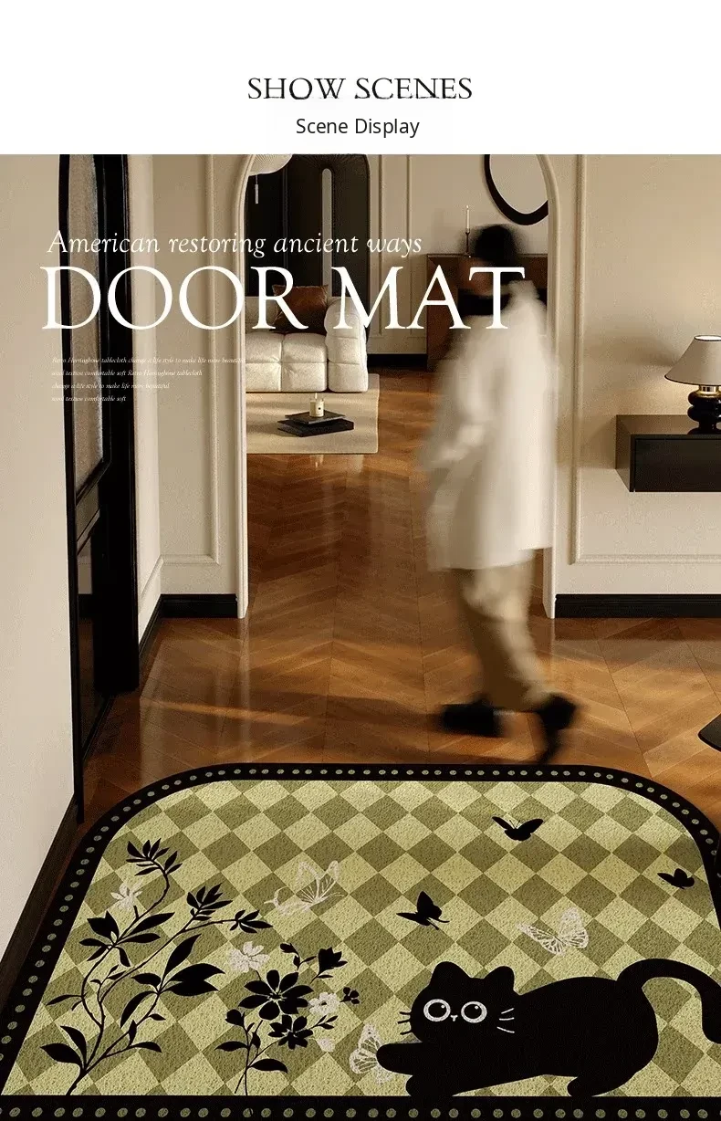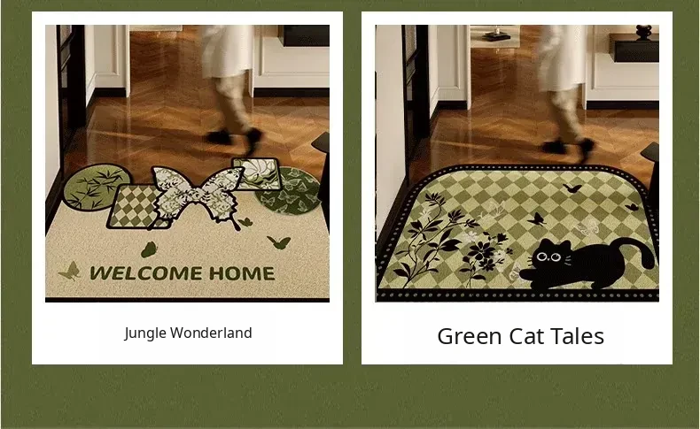 2025 New Luxury Entrance Mat - High-End Green Silk Loop Doormat for Entryway and Hallway - Elegant Butterfly Design Carpet