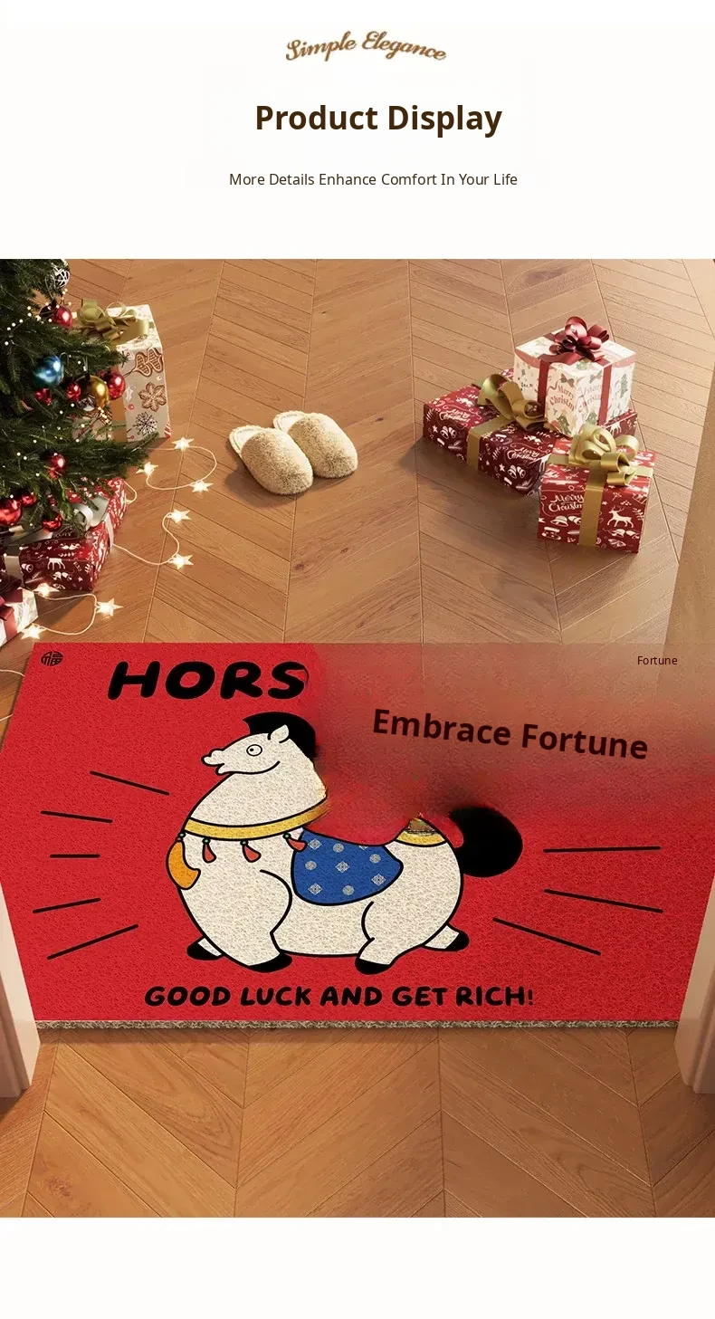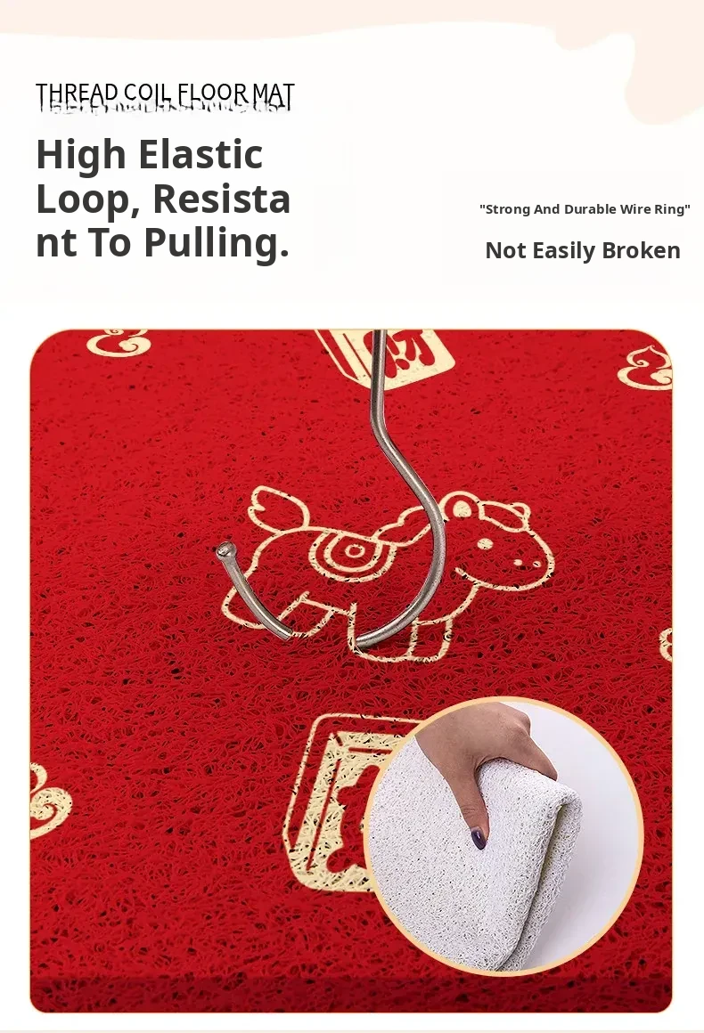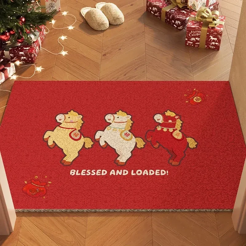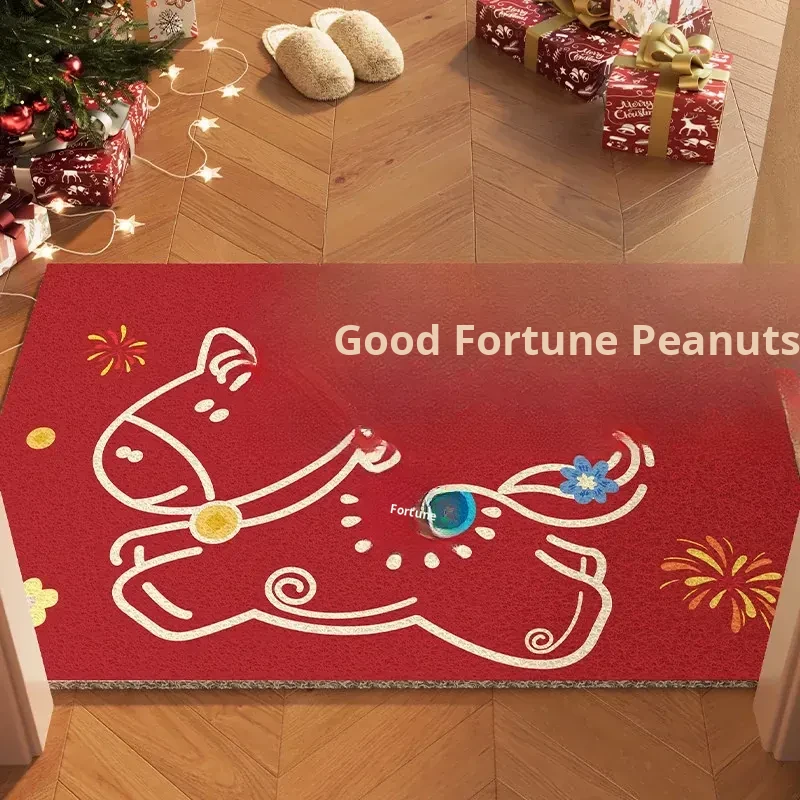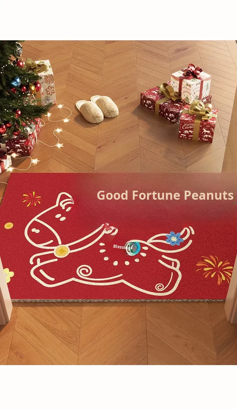 2026 Year of the Horse Festive Red Welcome Mat - Durable, Non-Slip, and Mud-Removing Carpet for New Year Celebrations