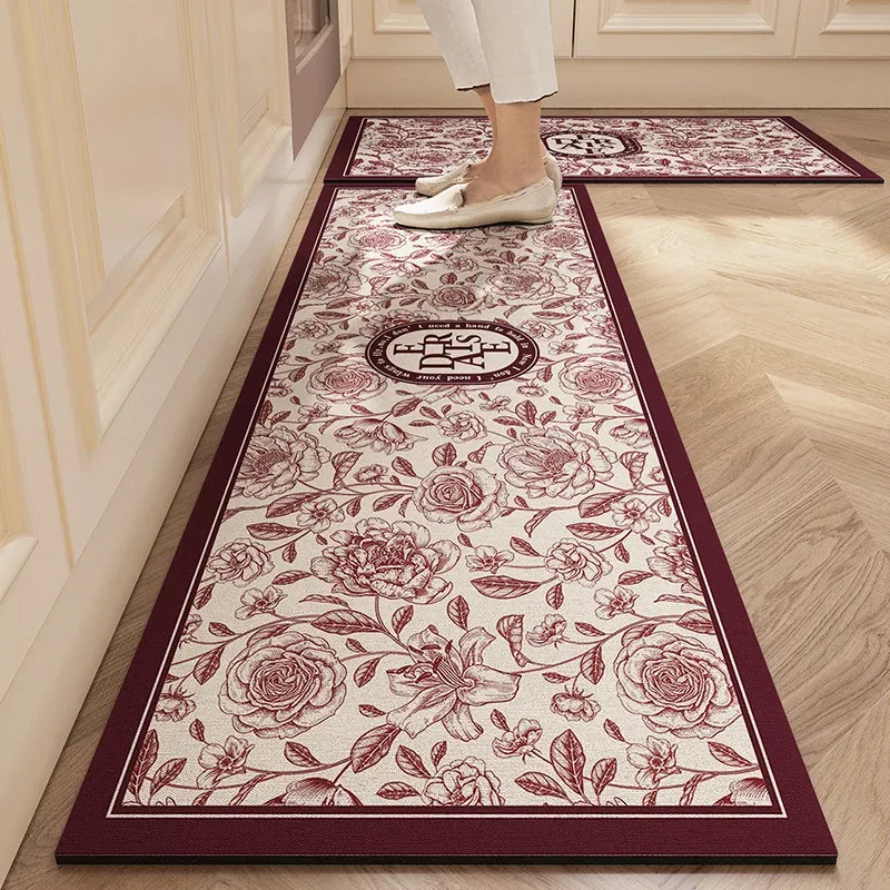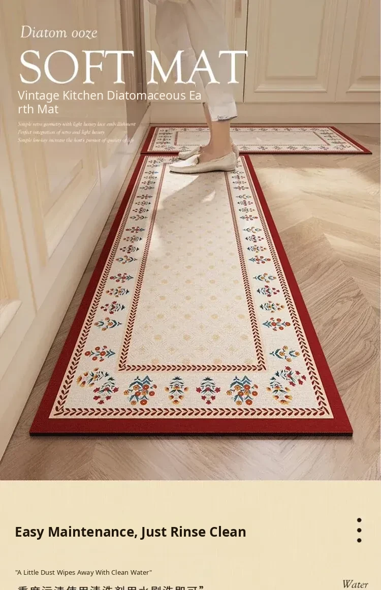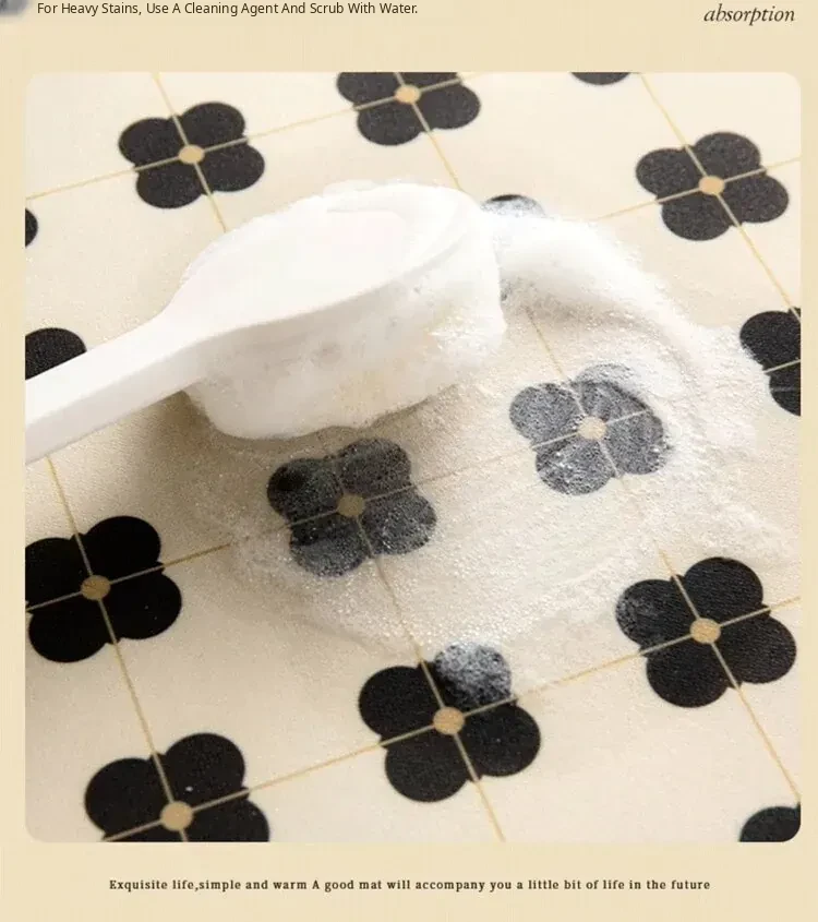 American Style Kitchen Flower Pattern Washable Non-Slip I-Shaped Diatomaceous Earth Absorbent Mat - Ideal for Keeping Your Floors Dry and Clean!